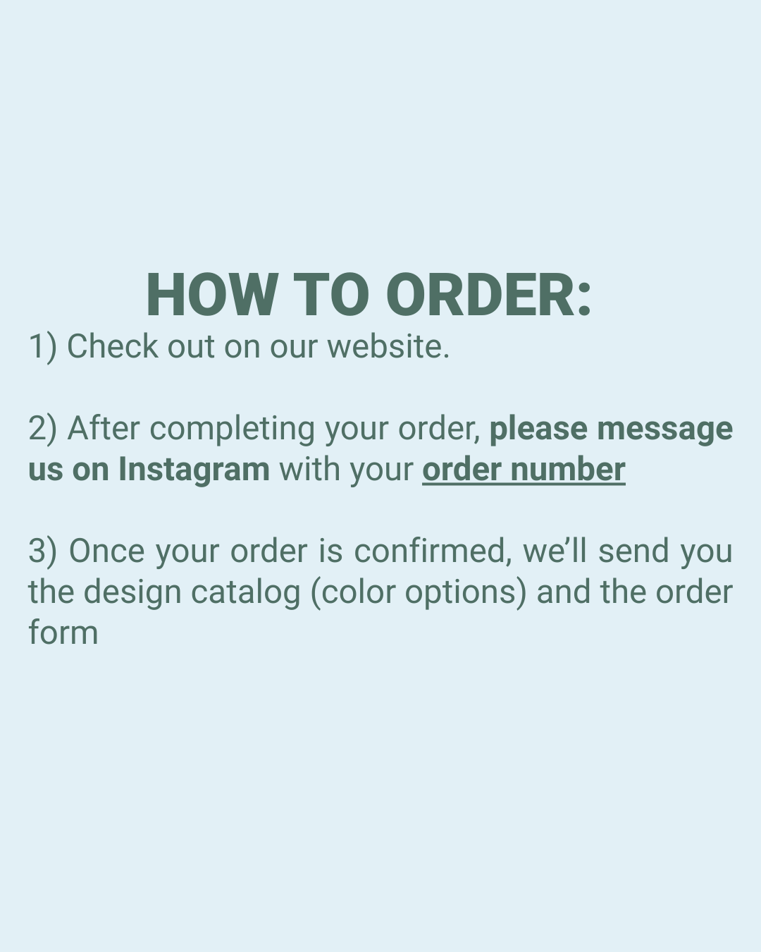 - After completing your order, please message us on Instagram with your order number.